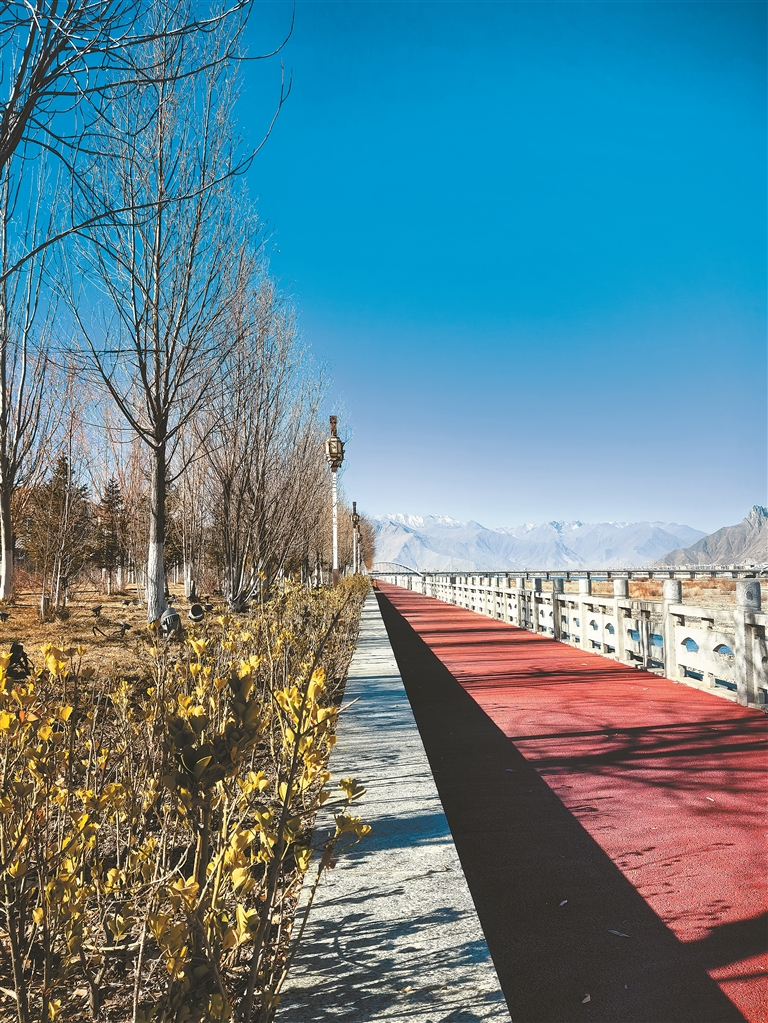 冬日拉薩,褪盡夏的喧囂,在澄澈如洗的天空下,悄悄釀出一抹溫潤(rùn)與鮮活。拉薩河畔的紅色塑膠步道上,凍硬的地面像被揉進(jìn)暖意;光禿的楊枝在藍(lán)天下勾勒出疏朗的剪影。零下的氣溫中,日光城拉薩懶懶睜開(kāi)惺忪睡眼。寒風(fēng)掠過(guò)耳畔,卻吹不散巷口的酥油茶香,也擋不住滿(mǎn)城涌動(dòng)的人間煙火與蓬勃生機(jī)。