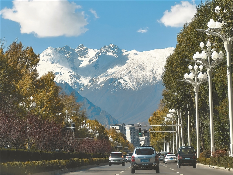 午后的拉薩街頭,車(chē)水馬龍的道路兩旁,高大的白楊樹(shù)落盡了葉子,卻依舊挺拔如衛(wèi)士。白色玉蘭花造型的路燈沿著街道延伸,與遠(yuǎn)處的雪山遙相呼應(yīng),構(gòu)成了一幅別致的城市圖景。行駛的車(chē)輛穿梭其間,車(chē)窗里偶爾探出的腦袋,會(huì)忍不住對(duì)著雪山按下快門(mén)——在拉薩,雪山從來(lái)不是遙不可及的風(fēng)景。市民尼瑪開(kāi)著車(chē)去接放學(xué)的孩子,路過(guò)拉薩河時(shí),她放慢車(chē)速:“冬天的拉薩河最藍(lán),雪山倒映在水里,像畫(huà)一樣?!避?chē)窗外,風(fēng)吹過(guò)河畔的蘆葦蕩,發(fā)出沙沙的聲響,與車(chē)內(nèi)的輕音樂(lè)交織,成了最?lèi)芤獾亩招伞?/p>