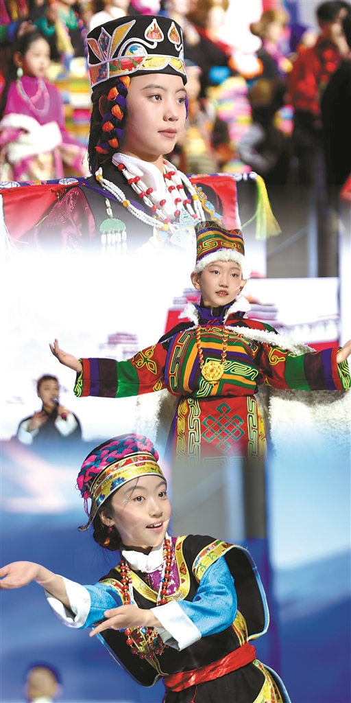 圖為拉薩少兒在西藏美術(shù)館進(jìn)行服飾展演。
