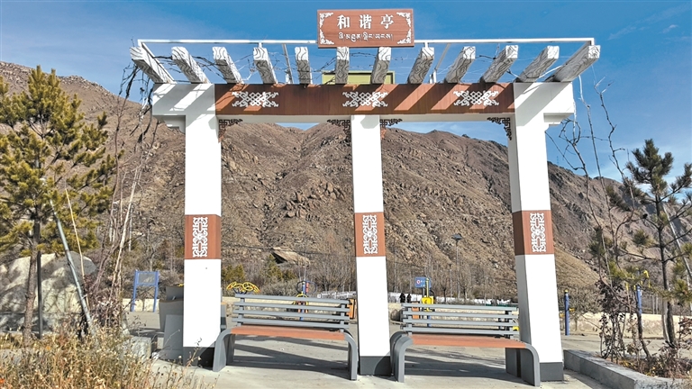 圖為哲蚌寺民族團結主題公園的和諧亭。記者 盧文靜 攝