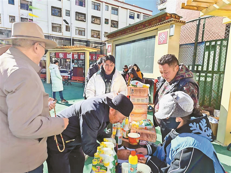 隨著春節(jié)與藏歷新年的臨近,城關區(qū)奪底街道振興社區(qū)處處洋溢著喜慶的氛圍,村民們都在精心籌備迎接“雙節(jié)”的到來。日前,社區(qū)以“黨建引領聚民生 三大節(jié)日同歡慶”為主題,組織轄區(qū)居民聆聽宣講、觀賞歌舞、齊跳鍋莊,并向困難群眾送上米、面、油等慰問物資。