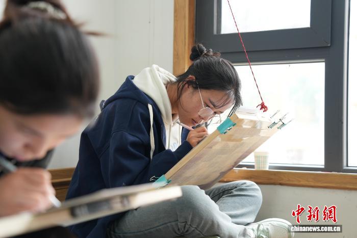 圖為畫室內(nèi)學(xué)徒練習(xí)繪畫唐卡。貢確 攝