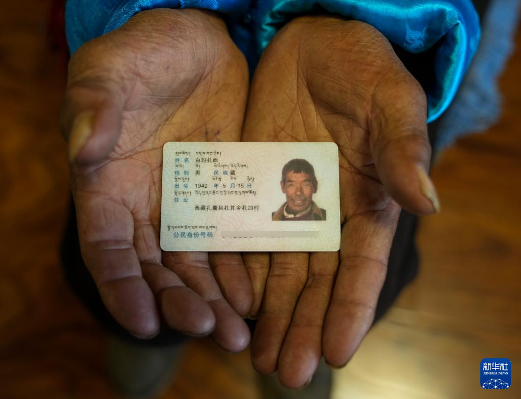 白瑪扎西展示自己的身份證(3月26日攝)。新華社記者 晉美多吉 攝