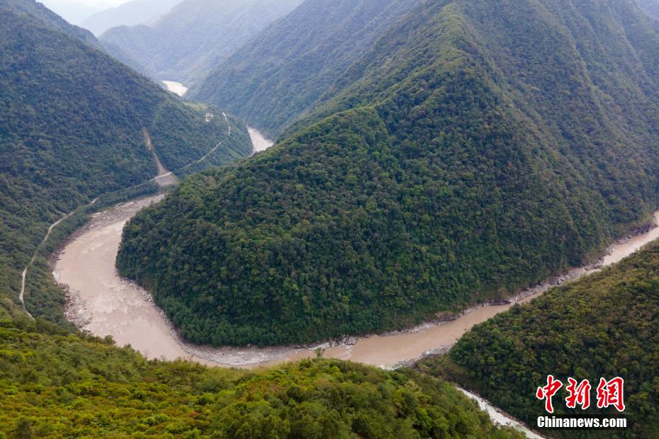 圖為林多大拐彎,畫面左側(cè)沿河流蜿蜒而下的為著名的墨脫公路。 江飛波 攝