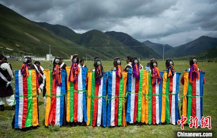 盛夏的西藏自治區(qū)拉薩市墨竹工卡縣門巴鄉(xiāng)仁多崗村草地上,28歲的尼瑪與身著盛裝的藏族牧民們跳著國家級非物質(zhì)文化遺產(chǎn)直孔普堆巴宣舞,迎接遠(yuǎn)道而來的游客,動作優(yōu)美的歌舞吸引了大家駐足觀賞,并用手機(jī)或相機(jī)記錄。