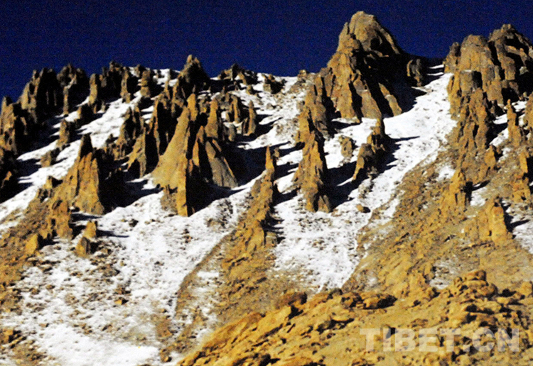 圖為文部辦事處(現(xiàn)尼瑪縣)被當(dāng)?shù)啬撩袢罕姺Q(chēng)為“一百個(gè)騎兵”的石林山(唐召明1987年攝)