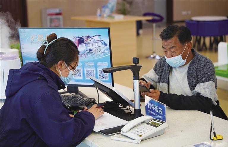 企業(yè)負(fù)責(zé)人在拉薩三級政務(wù)服務(wù)大廳辦理業(yè)務(wù)。