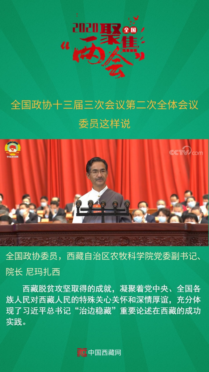 全國政協(xié)委員,西藏自治區(qū)農(nóng)牧科學院黨委副書記、院長尼瑪扎西發(fā)言說,西藏脫貧攻堅取得的成就,凝聚著黨中央、全國各族人民對西藏人民的特殊關(guān)心關(guān)懷和深情厚誼,充分體現(xiàn)了習近平總書記“治邊穩(wěn)藏”重要論述在西藏的成功實踐。