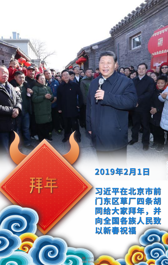 習(xí)近平在北京市前門東區(qū)草廠四條胡同給大家拜年,并向全國(guó)各族人民致以新春祝福