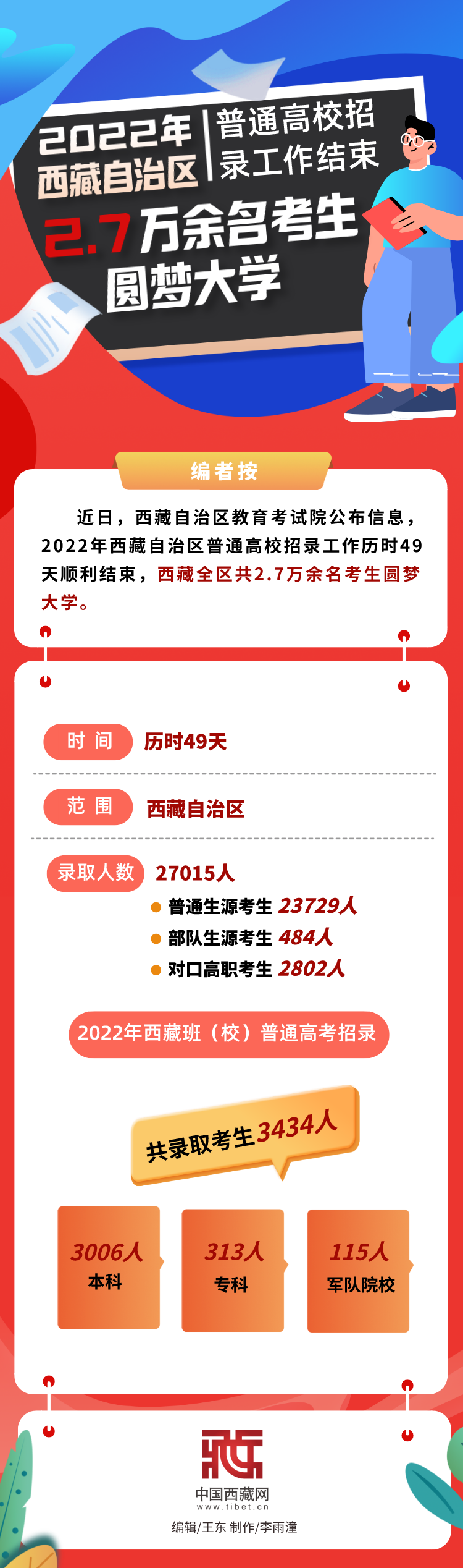 海報|2022年西藏自治區(qū)普通高校招錄工作結(jié)束 2.7萬余名考生圓夢大學(xué)