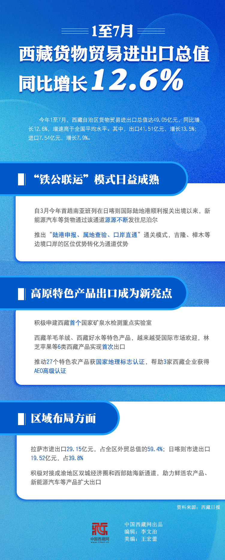 海報|1至7月西藏貨物貿易進出口總值同比增長12.6%