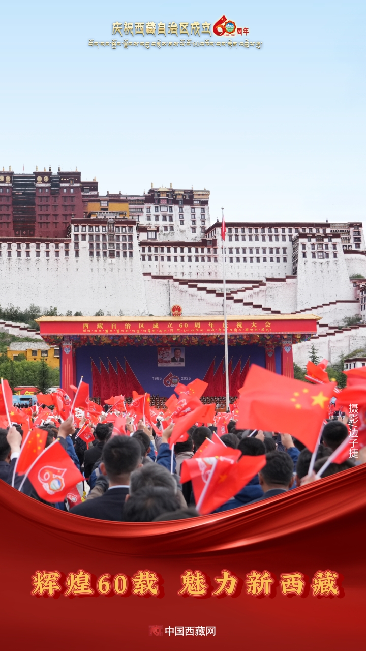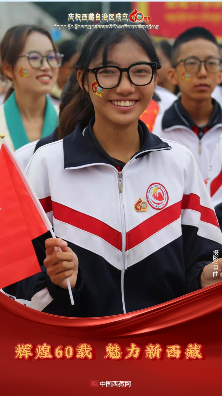 六十年風(fēng)雨兼程,六十年春華秋實,都在這一刻化作人們真摯的笑容與熱烈的歡呼。讓我們祝福祖國!祝西藏自治區(qū)繁榮昌盛,祝西藏各族人民幸福安康?。ㄖ袊鞑鼐W(wǎng)攝影/邊子捷 旦曲 趙振宇 制作/王茜)