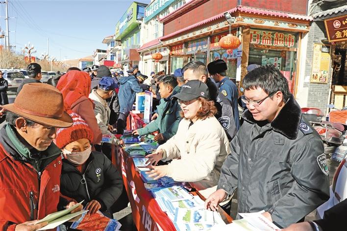 阿里地區(qū)生態(tài)環(huán)境局工作人員在向群眾發(fā)放環(huán)境保護(hù)宣傳材料。