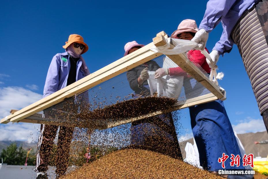 6月9日,西藏拉薩,工作人員正在篩選樹(草)種。當(dāng)日,西藏自治區(qū)林業(yè)和草原局在拉薩市組織開展首次飛播造林工作,此次飛播造林共設(shè)計(jì)9個(gè)飛播作業(yè)區(qū),其中拉薩市7個(gè),山南市2個(gè),由拉薩雪鷹通用航空公司負(fù)責(zé)飛機(jī)播種。設(shè)計(jì)飛播造林面積21.8萬畝,設(shè)計(jì)飛機(jī)播種沙棘、砂生槐等樹(草)種約119.3噸。中新社記者 何蓬磊 攝