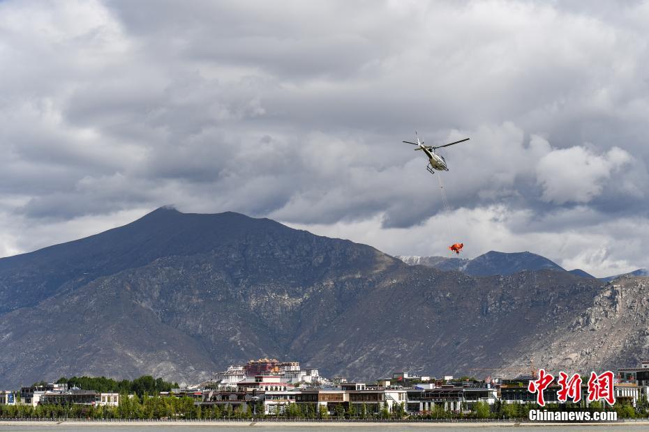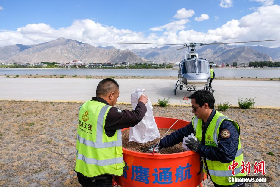 6月9日,西藏拉薩,拉薩雪鷹通航直升機(jī)從機(jī)場起飛前往造林點(diǎn)。當(dāng)日,西藏自治區(qū)林業(yè)和草原局在拉薩市組織開展首次飛播造林工作,此次飛播造林共設(shè)計(jì)9個(gè)飛播作業(yè)區(qū),其中拉薩市7個(gè),山南市2個(gè),由拉薩雪鷹通用航空公司負(fù)責(zé)飛機(jī)播種。設(shè)計(jì)飛播造林面積21.8萬畝,設(shè)計(jì)飛機(jī)播種沙棘、砂生槐等樹(草)種約119.3噸。中新社記者 何蓬磊 攝