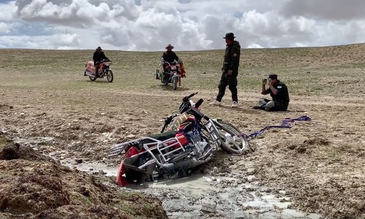 圖為陷在泥坑中的摩托車 圖片來源那曲廣播電視臺