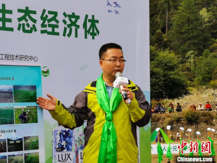 圖為西藏高原草業(yè)工程技術(shù)研究中心武俊喜博士回顧“力士·綠哈達(dá)行動(dòng)”植草歷程。 張偉 攝