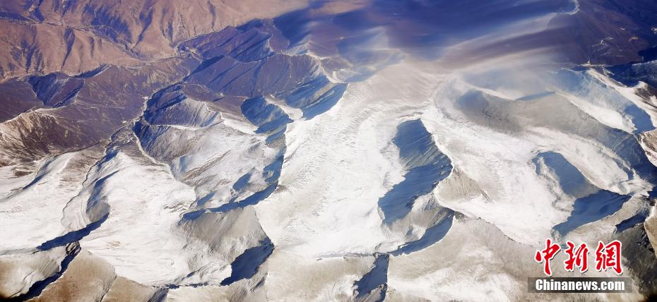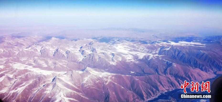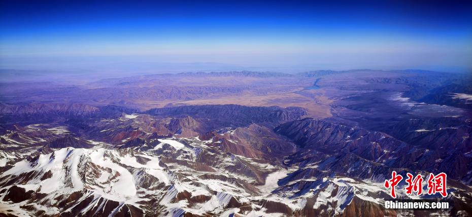 11月9日,記者從萬米高空俯瞰祁連山,雪域之巔造型各異,氣勢恢宏的雪山棱角分明,在皚皚白雪的覆蓋下,山巔似撒了一把把“椒鹽”,陽剛與陰柔之美相得益彰,高原湖泊如藍寶石般鑲嵌在祁連山脈,更有藍天、白雪、黃沙和諧同框的奇觀,宛如張張“水墨丹青”的油彩畫,看“醉”空中旅人。 魏建軍 攝