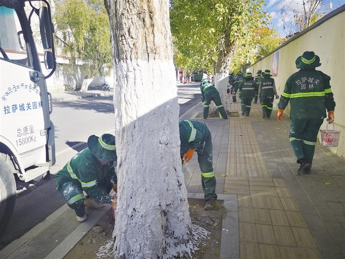 拉薩市區(qū)近4萬棵樹木涂白換“冬裝”,下一步將開展冬灌、覆土防寒等工作。