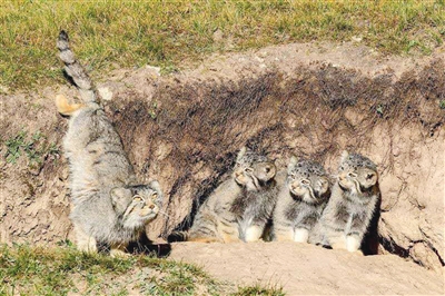 早上8時(shí)左右,五六十米外的巢穴中有了動靜,1只兔猻媽媽帶著3只小兔猻出來覓食,和諧的場景沒持續(xù)多久就被遠(yuǎn)處虎視眈眈而來的藏狐打破了。兔猻媽媽警惕地盯著藏狐,發(fā)出短促的警報(bào)聲,3只小兔猻迅速奔回洞穴,攝影師順勢按下快門,《當(dāng)媽媽說跑步前進(jìn)》由此而來。