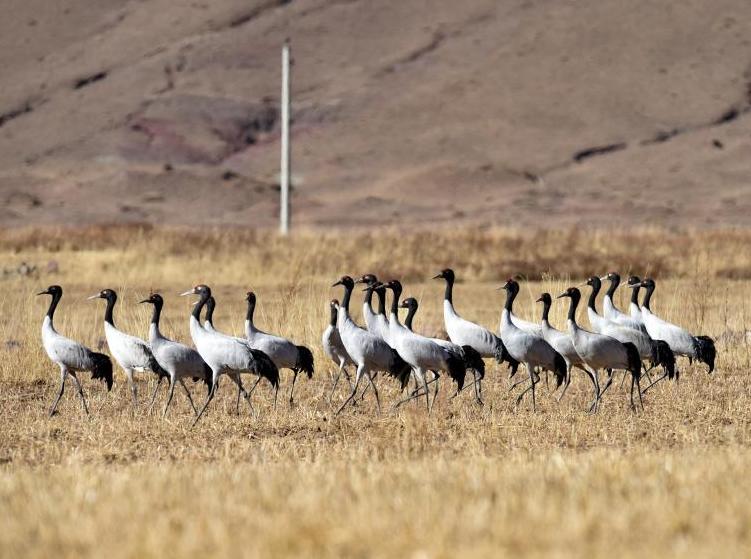 黑頸鶴集聚拉薩林周縣