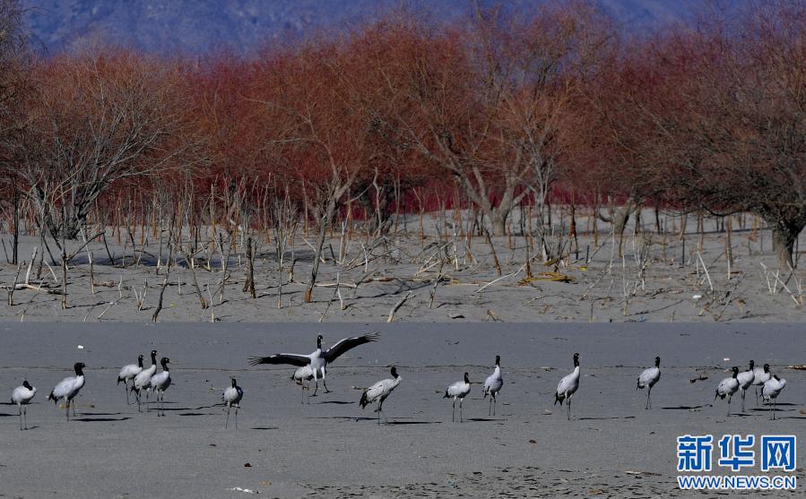 冬季,成群結(jié)隊(duì)的黑頸鶴遷徙到西藏林芝市,雅魯藏布江及江畔的農(nóng)田成了它們越冬的樂園。