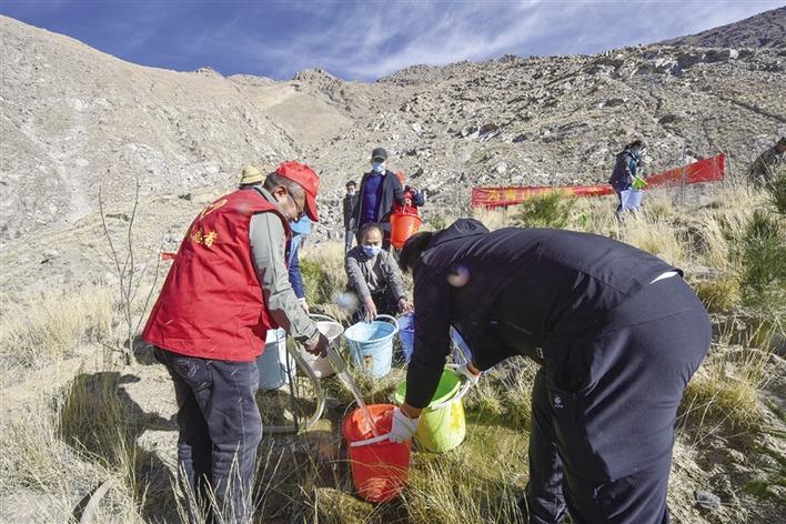 拉薩市林草局相關(guān)負責人介紹,上午10點,植樹隊伍早早就到達現(xiàn)場,在事先劃分好的植樹區(qū)域,大家態(tài)度積極、熱情高漲,興致勃勃地投入到植樹活動中。