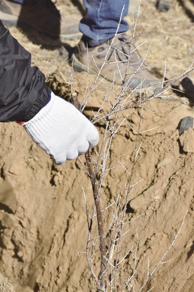 活動現(xiàn)場,大家自覺兩三人一組,分工合作,干勁十足,一起揮鍬培土、放置樹苗、提桶澆水、端正樹苗……每個環(huán)節(jié)都做得認真到位,銜接有序,經(jīng)過緊張的勞動,原本荒涼的土地上呈現(xiàn)出勃勃生機。