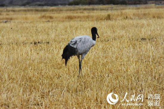 西藏日喀則境內(nèi)的黑頸鶴。人民網(wǎng) 李海霞攝