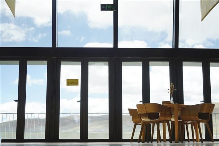 從正門進(jìn)入,穿過牦牛文化空間走廊,便可到能夠以最佳視角欣賞念青唐古拉山的VR觀景臺。緊鄰觀景臺右側(cè),是一間擺放當(dāng)?shù)匚膭?chuàng)產(chǎn)品、各類書籍的觀景咖啡廳。該咖啡廳的兩面墻體設(shè)計為超大落地窗,在此休息的游客可以邊品嘗咖啡,邊欣賞念青唐古拉山及拉多草原的美景。走進(jìn)咖啡廳,記者看到不少在這里休息的游客都在低頭寫著什么,經(jīng)咖啡廳負(fù)責(zé)人介紹:“這些游客是在寫明信片,我們這里不僅提供餐飲,還提供印有本地風(fēng)景的明信片,并同中國郵政合作,幫助游客按時將明信片寄到他們的親朋好友手中,讓游客們的旅途變得更有意義?!?/p>
