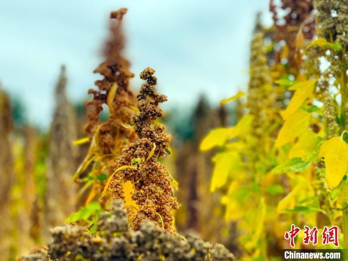 24日,仲秋時(shí)節(jié),地處中國“聚寶盆”柴達(dá)木盆地腹地的青海省海西州烏蘭縣迎來藜麥成熟豐收季,姹紫嫣紅美不勝收。