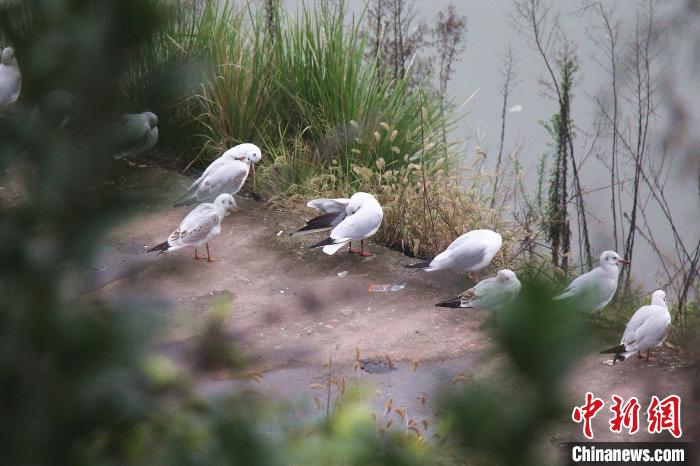 成群的海鷗在甜城湖岸邊棲息。 付垚霖 攝