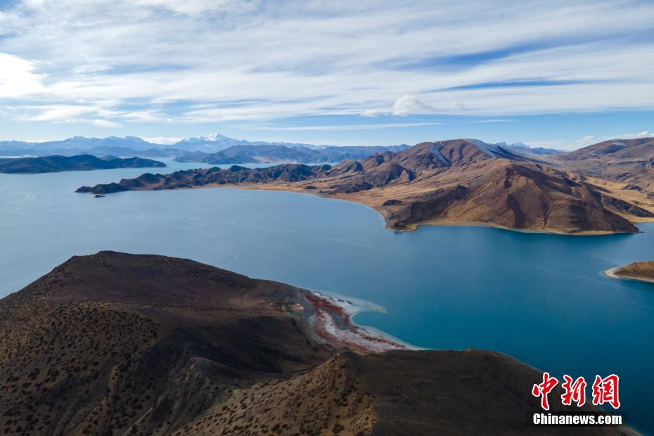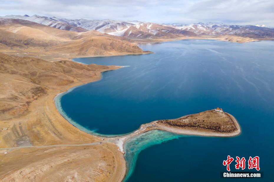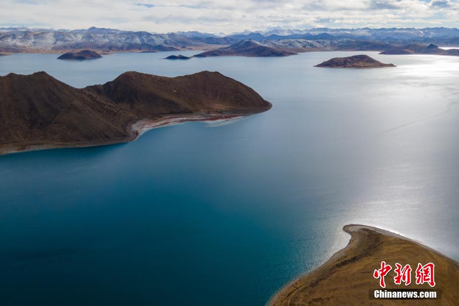 12月28日,羊卓雍錯湖岸風光。羊卓雍錯藏語意為“碧玉湖”,與納木錯、瑪旁雍錯并稱西藏三大“圣湖”。羊卓雍錯湖面海拔4441米,東西長130公里,南北寬70公里,湖岸線總長250多公里。28日,中新網(wǎng)記者自駕前往羊卓雍錯,翻過山口,到達湖岸東北面的日托寺,沿途盡是冬日高原湖光山色之美,無人機航拍鏡頭下,遠處雪山、冰川巍峨屹立,堪稱絕美。 江飛波 攝