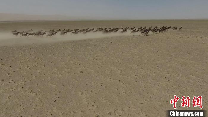 一望無垠的草原上,成群的藏野驢自由奔馳,掀起一路煙塵?!∩轩i 攝