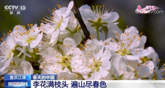 跟隨鏡頭,我們來到重慶江津區(qū)黑灘村,這里的千畝李花正開滿枝頭?;ㄈ餇幭嗌L,花瓣盡情舒展,遠(yuǎn)觀如滿樹雪霜,近賞又清新淡雅。漫山春花芬芳動人,吸引游客紛至沓來。
