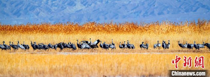 近日,幾百只灰鶴遷徙到可魯克湖,它們或四處覓食,或歇腳休息,呈現(xiàn)出一片生機(jī)勃勃的景象。