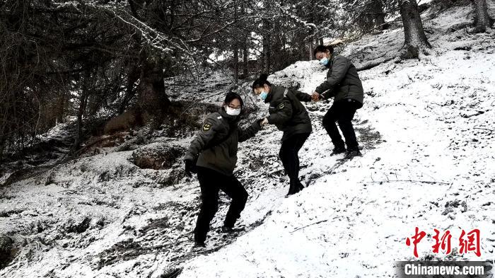 楊毛措是隊伍里年長些的“大姐”,從事林業(yè)工作14年的她告訴記者,青陽溝管護站管護面積比較大,共有15874.2公頃,平均海拔在3100米。她們都是隨機分配到青陽溝,“無心插柳”成了女子較多的管護站,平日里也有男隊員一起守護著青陽溝、阿柔、日旭三個片區(qū),平日里主要進行入戶宣傳、森林草原火災(zāi)排查、林木病蟲害防治、人員流動動態(tài)信息收集、野生動物保護救助等。