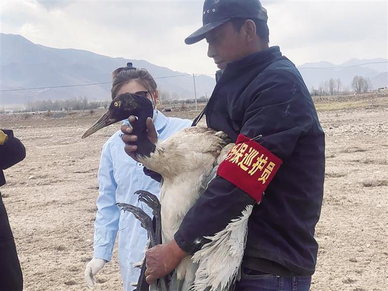 巡護員救助受傷黑頸鶴。文/圖 記者 王靜
