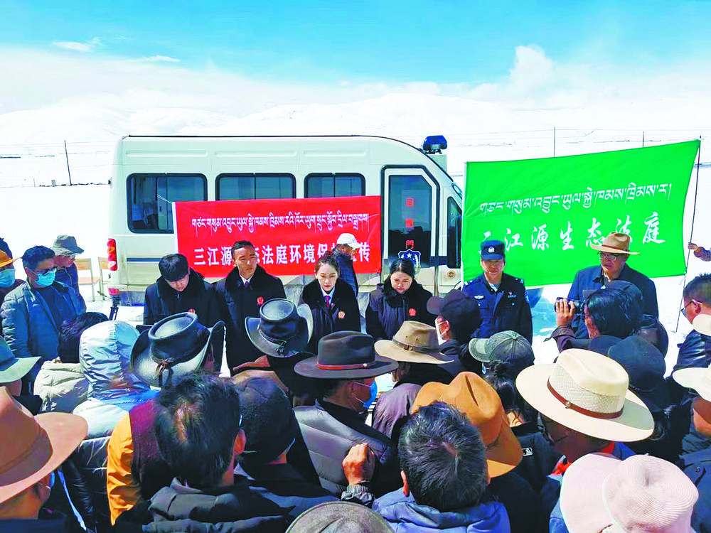 三江源生態(tài)法庭開展“送法下鄉(xiāng)”活動(dòng)。三江源生態(tài)法庭供圖 記者 張子涵 程宦寧