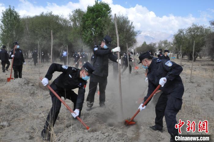 圖為西藏邊檢總站輪訓大隊民警植樹活動現(xiàn)場 ?!∥鞑剡厵z總站輪訓大隊供圖