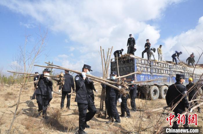 圖為西藏邊檢總站輪訓大隊民警植樹活動現(xiàn)場 。 西藏邊檢總站輪訓大隊供圖