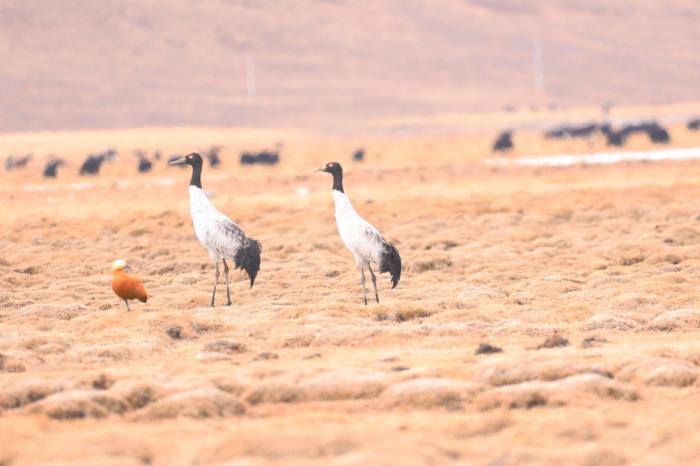 據(jù)介紹,此次調(diào)查共記錄到鳥類44種8000余只,隸屬11目22科。其中,國家Ⅰ級保護動物4種,分別為黑頸鶴、胡兀鷲、草原雕、獵隼;國家Ⅱ級保護動物6種,分別為蓑羽鶴、灰鶴、高山兀鷲、大鵟、縱紋腹小鸮、紅隼;列入世界自然保護聯(lián)盟瀕危物種紅色名錄(IUCN),瀕危2種、易危1種、近危3種、無危37種。