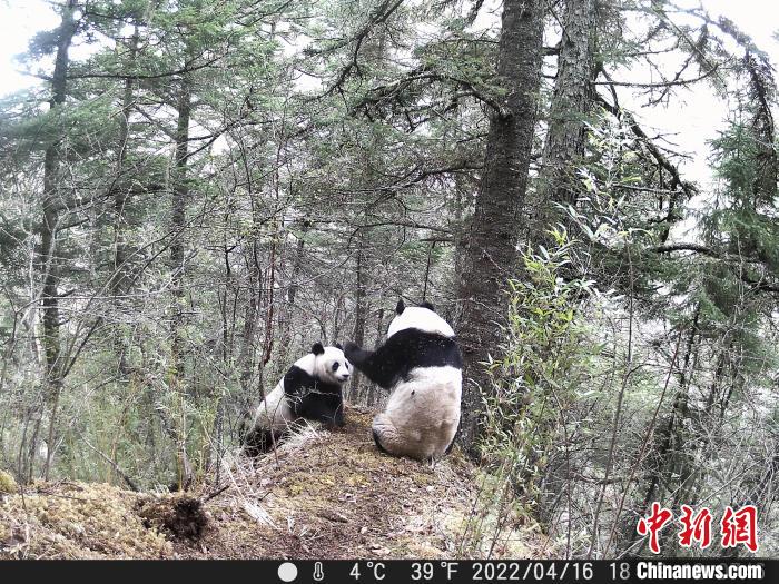 據(jù)黃龍自然保護(hù)區(qū)資源保護(hù)與科研處處長安德軍介紹,此次共拍攝到大熊貓照片300多張、視頻30段、時(shí)長共計(jì)15分鐘,完整記錄了3只雄性大熊貓爭奪配偶,最終獲勝的1只雄性大熊貓與1只雌性大熊貓交配的過程。在長達(dá)5個(gè)多小時(shí)的時(shí)間里,這只雄性大熊貓一直與雌性大熊貓?jiān)谝黄?,并多次發(fā)生交配行為。不出意外,該雌性大熊貓將在今年年底誕下幼仔,這也是有記錄以來它在張家溝誕下的第三只幼仔。