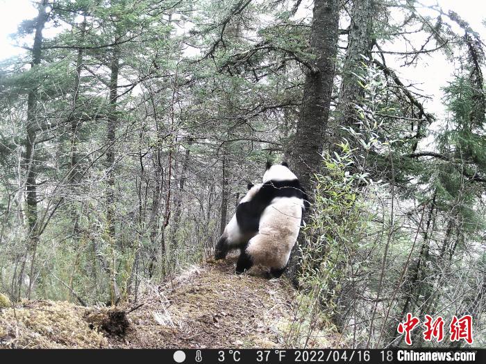 為了打敗競爭者,平時(shí)呆頭呆腦、憨態(tài)可掬,有點(diǎn)傻萌的“滾滾”秒變“功夫熊貓”,電光火石的出拳速度和直取要害的攻擊路線,精彩激烈的拳擊、摔跤、柔術(shù)等看家本領(lǐng)統(tǒng)統(tǒng)用上,甚至為了提高自身氣勢,不惜使出“獅吼功”,試圖在氣勢上壓倒競爭對手。而這一切只是為了選擇優(yōu)秀的基因,以利于大熊貓種群在嚴(yán)酷的自然環(huán)境中繁衍生存。此次監(jiān)測視頻中,出現(xiàn)3只大熊貓同框畫面,其中兩只雄性大熊貓因爭奪交配權(quán)出現(xiàn)吼叫、打斗行為;一段視頻中,出現(xiàn)兩只大熊貓“打情罵俏”求偶交配畫面。