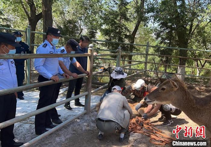 圖為青海省野生動物救助中心工作人員對白唇鹿進行檢查?!〖庠h公安局供圖
