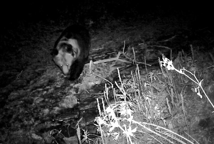 圖為紅外相機(jī)拍攝到的棕熊照片?!』ブ诿焦﹫D