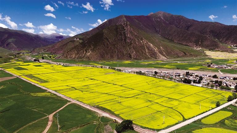 記者了解到,今年墨竹工卡縣種植小油菜3.5萬畝,通過“一桶好油 ”計(jì)劃發(fā)展一、二、三產(chǎn)業(yè)融合,推動(dòng)墨竹小菜籽油的整體發(fā)展,讓百姓享受到發(fā)展小油菜產(chǎn)業(yè)帶來的經(jīng)濟(jì)成果,切實(shí)做好脫貧攻堅(jiān)和鄉(xiāng)村振興的有效銜接。每逢墨竹工卡縣小油菜花開時(shí),金黃的小油菜花和翠綠的青稞相交融,織成了一幅美不勝收的天然畫卷。