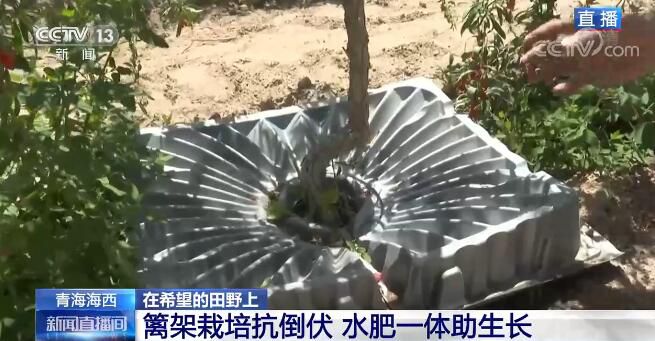 在栽培種植方面,由于枸杞樹苗比較脆弱,為了保證存活率,需要在溫室里培育一定時(shí)間才能適應(yīng)這里的氣候,之后才會(huì)移植到室外,進(jìn)行籬架栽培。而這樣的種植方式主要是為了抗倒伏,這里風(fēng)沙天氣較為頻繁,如果沒有籬架的支持保護(hù),枸杞樹很容易會(huì)栽倒,結(jié)下的果子與地表接觸一段時(shí)間后基本就會(huì)糜爛,產(chǎn)量就無法保證。大家可以再看一下枸杞樹的底部,有一個(gè)黑色的水管,工人會(huì)在水里加入水溶肥,既能澆水又能施肥,達(dá)到水肥一體。底下灰色的托板有兩個(gè)好處,一個(gè)是精準(zhǔn)灌溉,因?yàn)樵诟吆0蔚貐^(qū)氣候比較干燥、降水比較少,板上的凹槽能夠?qū)⒂晁吐端紖R聚到枸杞樹;第二個(gè)是可以遮擋陽光,能夠抑制雜草的生長(zhǎng)。