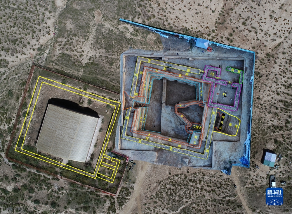 “2022年的工作重點(diǎn)是對2007QM1進(jìn)行保護(hù)性清理發(fā)掘?!敝袊鐣茖W(xué)院考古研究所副研究員韓建華介紹,目前2007QM1清理發(fā)掘工作已經(jīng)完成。據(jù)介紹,2007QM1位于2018血渭一號墓西側(cè),緊挨2018血渭一號墓西塋墻。早年已發(fā)掘出塋墻、地上建筑、墓道、甬道、照墻和墓室,但未公布考古資料。為保護(hù)展示遺址,經(jīng)重新發(fā)掘,確認(rèn)該墓墓園形制和規(guī)模與2018血渭一號墓墓園相似。