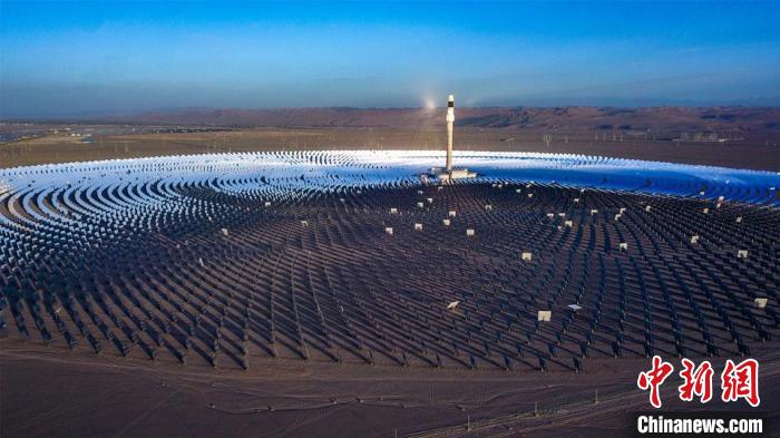 圖為10月16日,甘肅省敦煌市光電產業(yè)園區(qū)內,萬余面定日鏡以同心圓狀圍繞著260米高的吸熱塔?!⊥醣筱y 攝